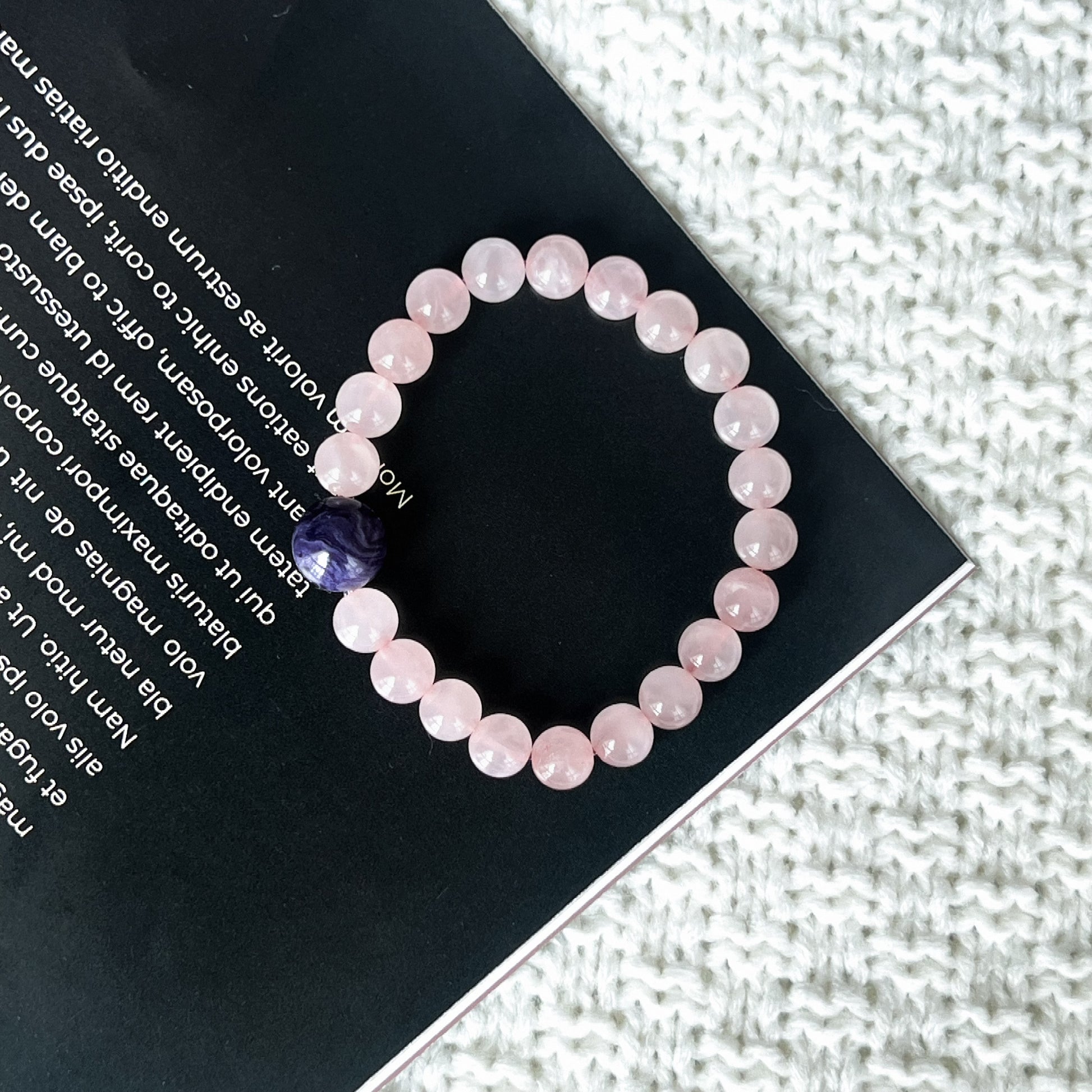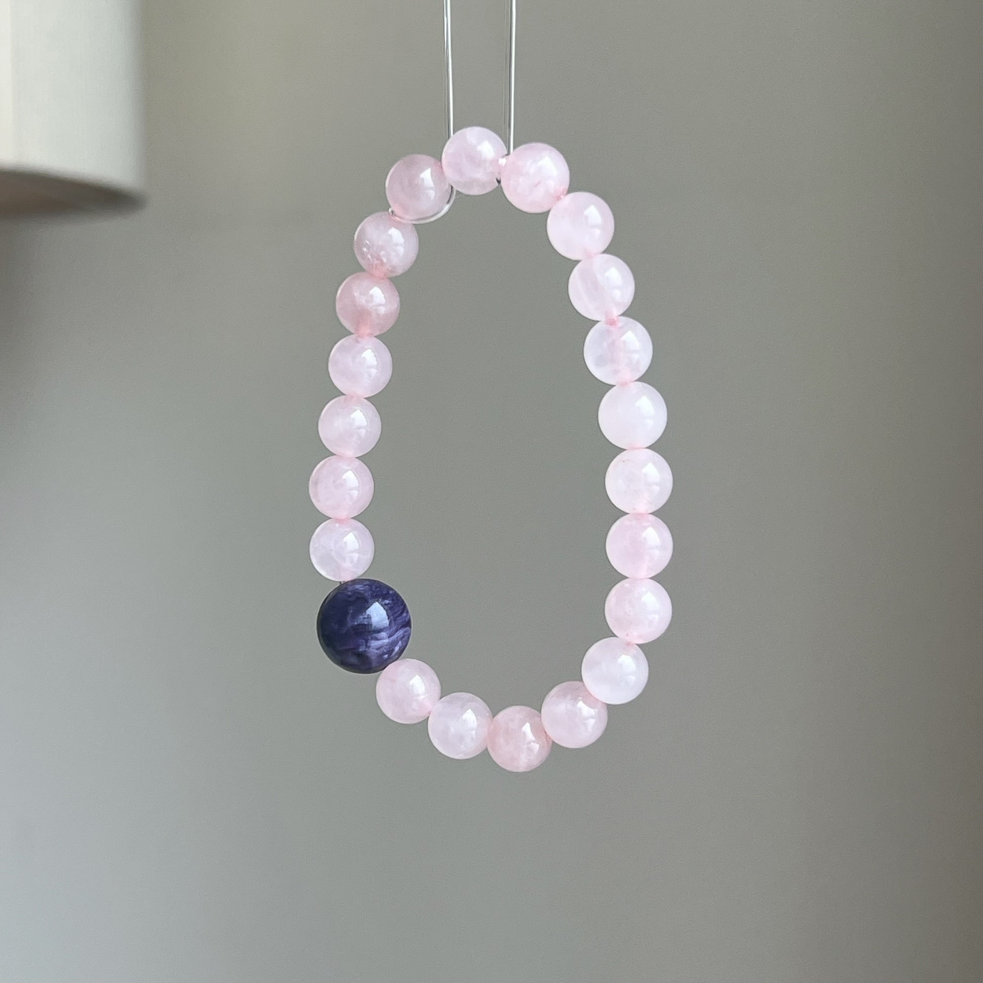 Together, these crystals create a poetic harmony — a veil of cherry blossom mist infused with the depth of the galaxy. Minimalist in design yet rich in meaning, this bracelet carries both elegance and soul. Wearing it feels like letting love and courage flow freely at your wrist, a talisman for tenderness, balance, and inner strength.