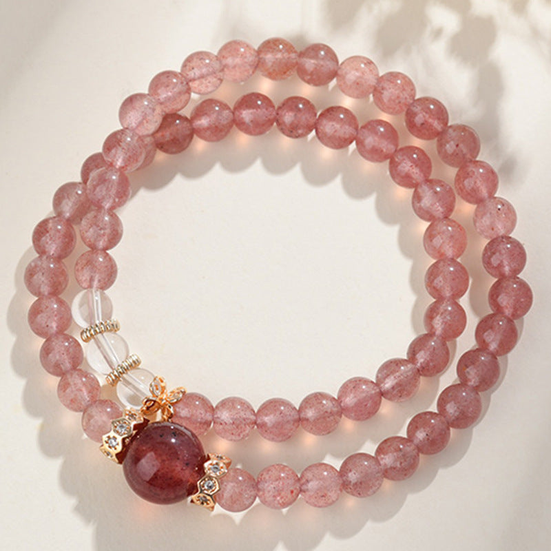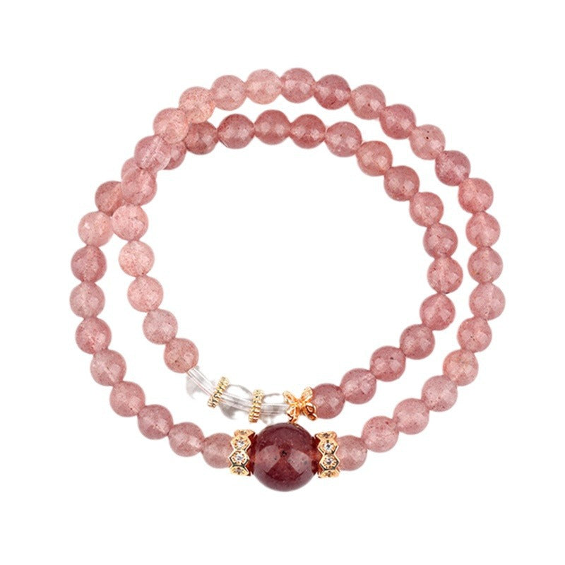 سوار مزدوج اللف من حجر الكوارتز الفراولي "بلَش بلوم"