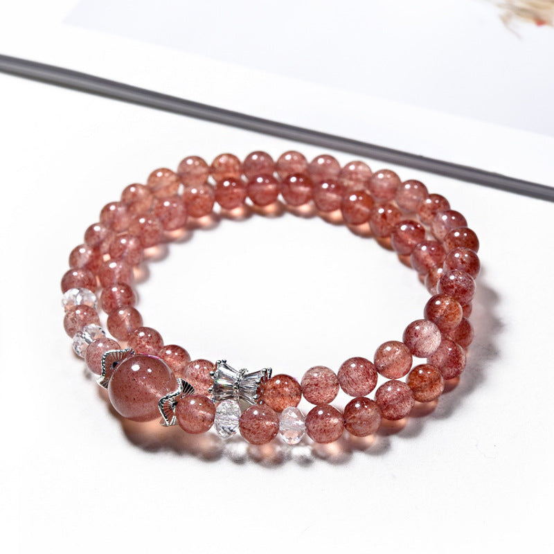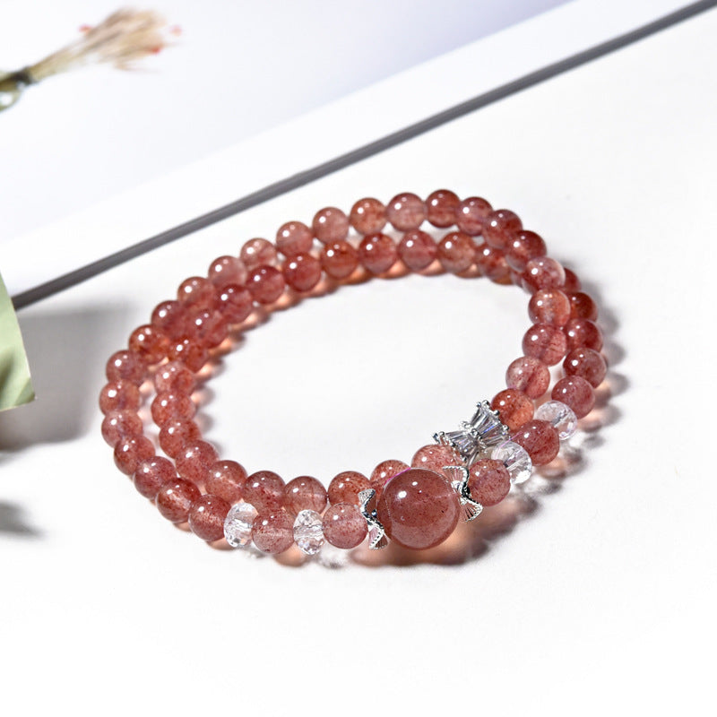 A soft embrace of love and joy, this wrap-style bracelet features radiant 6mm Strawberry Quartz paired with glimmering micro-set zircon accents. Its multi-layered design brings a gentle rhythm to your energy field — like a heart that blossoms with every beat.