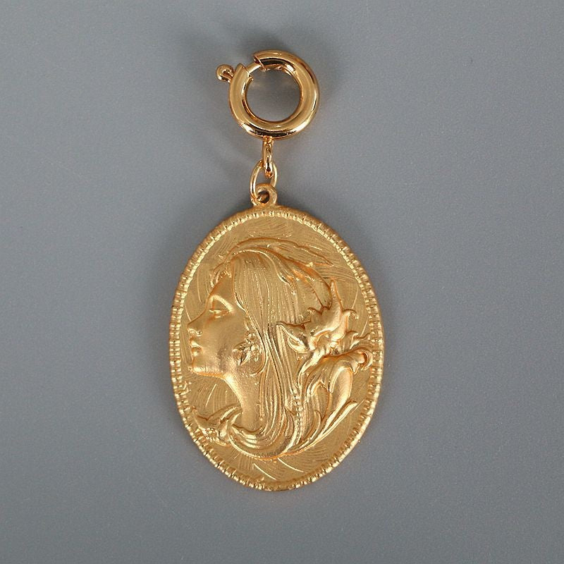 - 🪙 ميدالية إلهة بلون الذهب العتيق مع نقش بارز بتفاصيل دقيقة