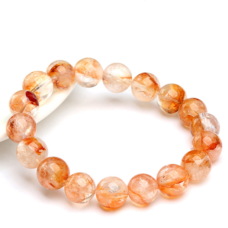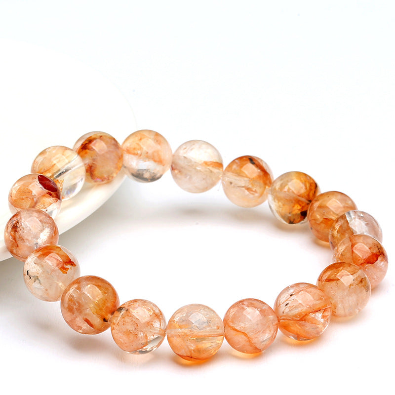 هذا السوار الرقيق مصنوع من حجر "كوارتز الروتيل الورقي" الطبيعي — المحبوب بشذراته الكهرمانية الفريدة وبريقه المتلألئ الشبيه بالزهور. تبدو كل خرزة وكأن بتلات صغيرة مختومة داخل الكريستال، تتوهج بنعومة من الداخل.