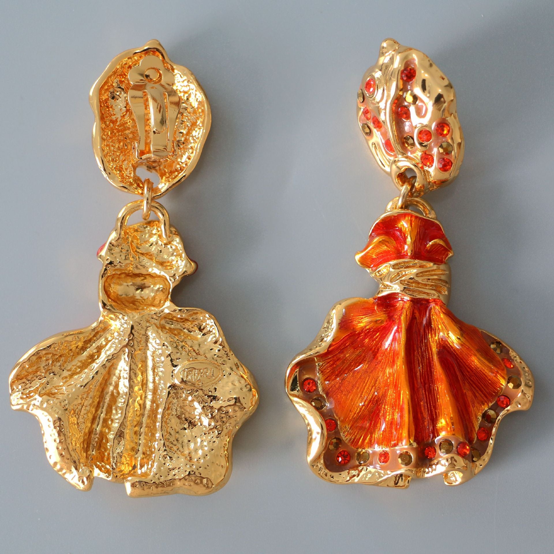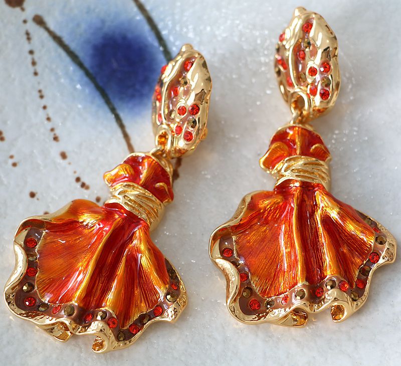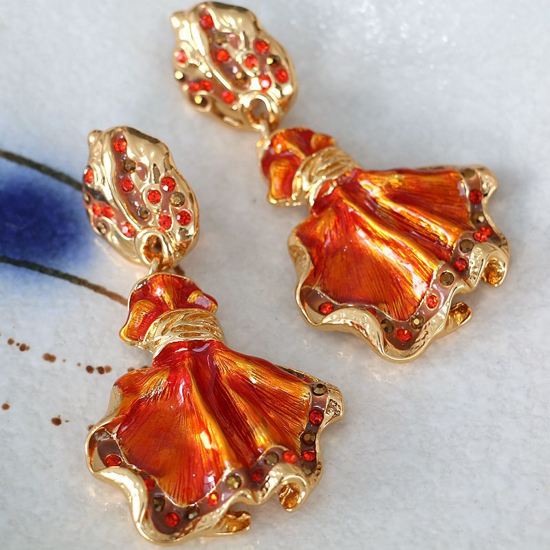 رقصة السمكة الذهبية · أقراط متدلية مطرزة بالمينا الكلوازوني العتيق