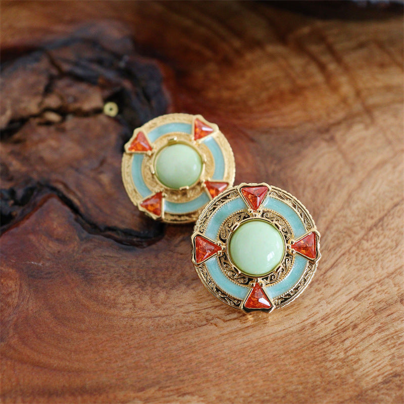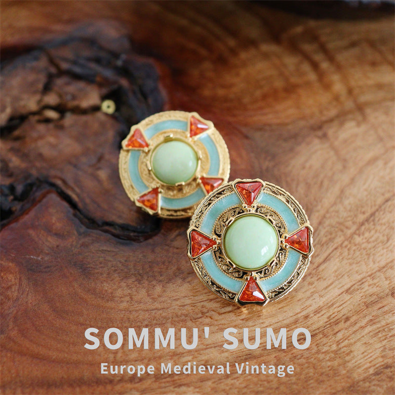 أقراط بيان عتيقة بشكل بوصلة من العصور الوسطى · مطلية بالمينا ومرصعة بالزركون