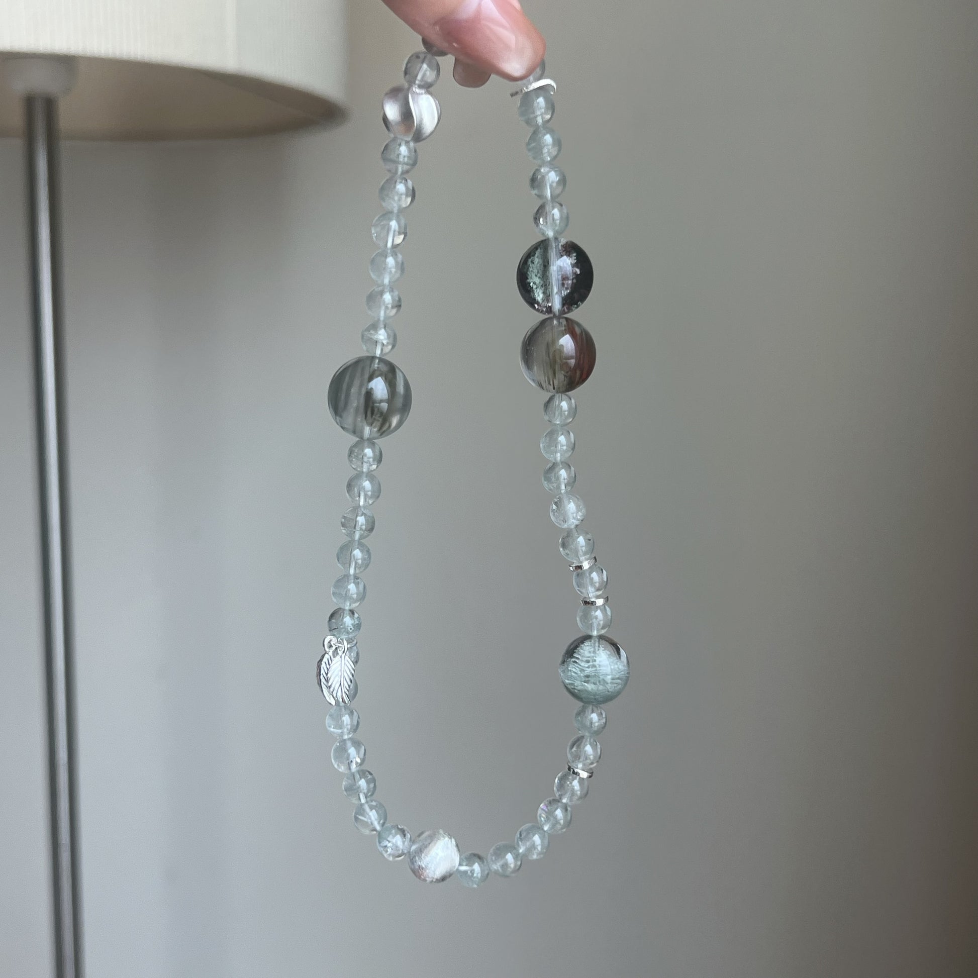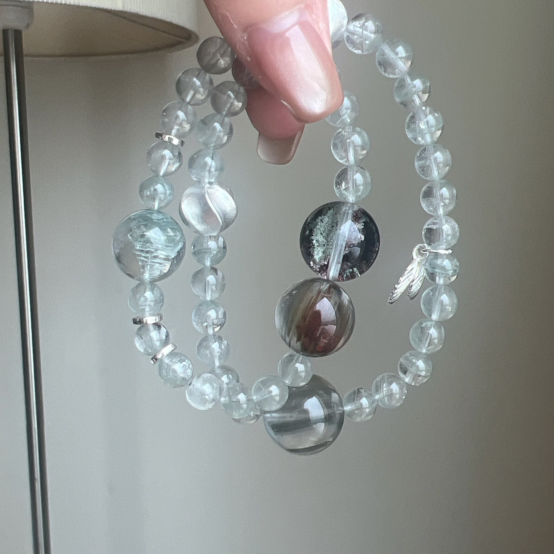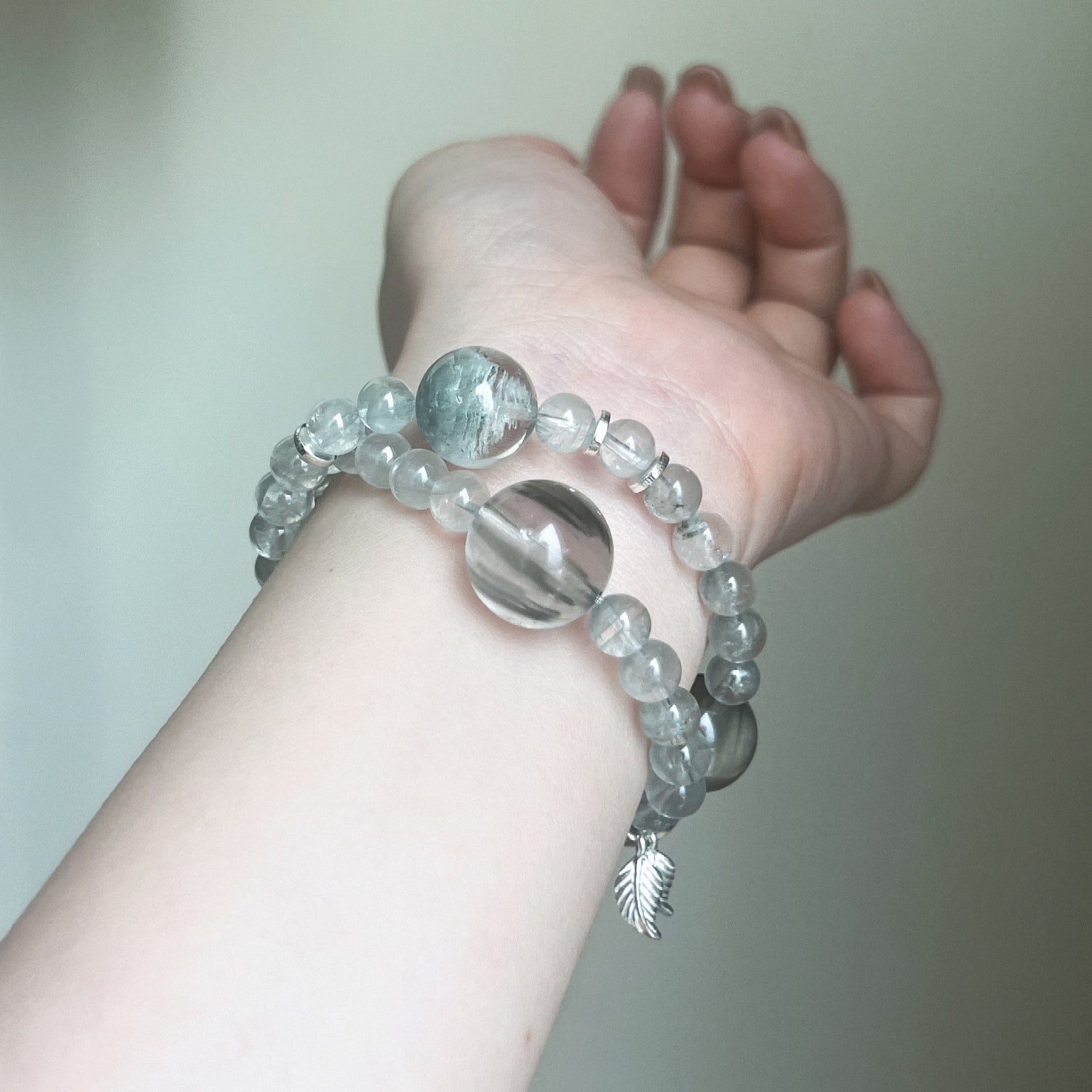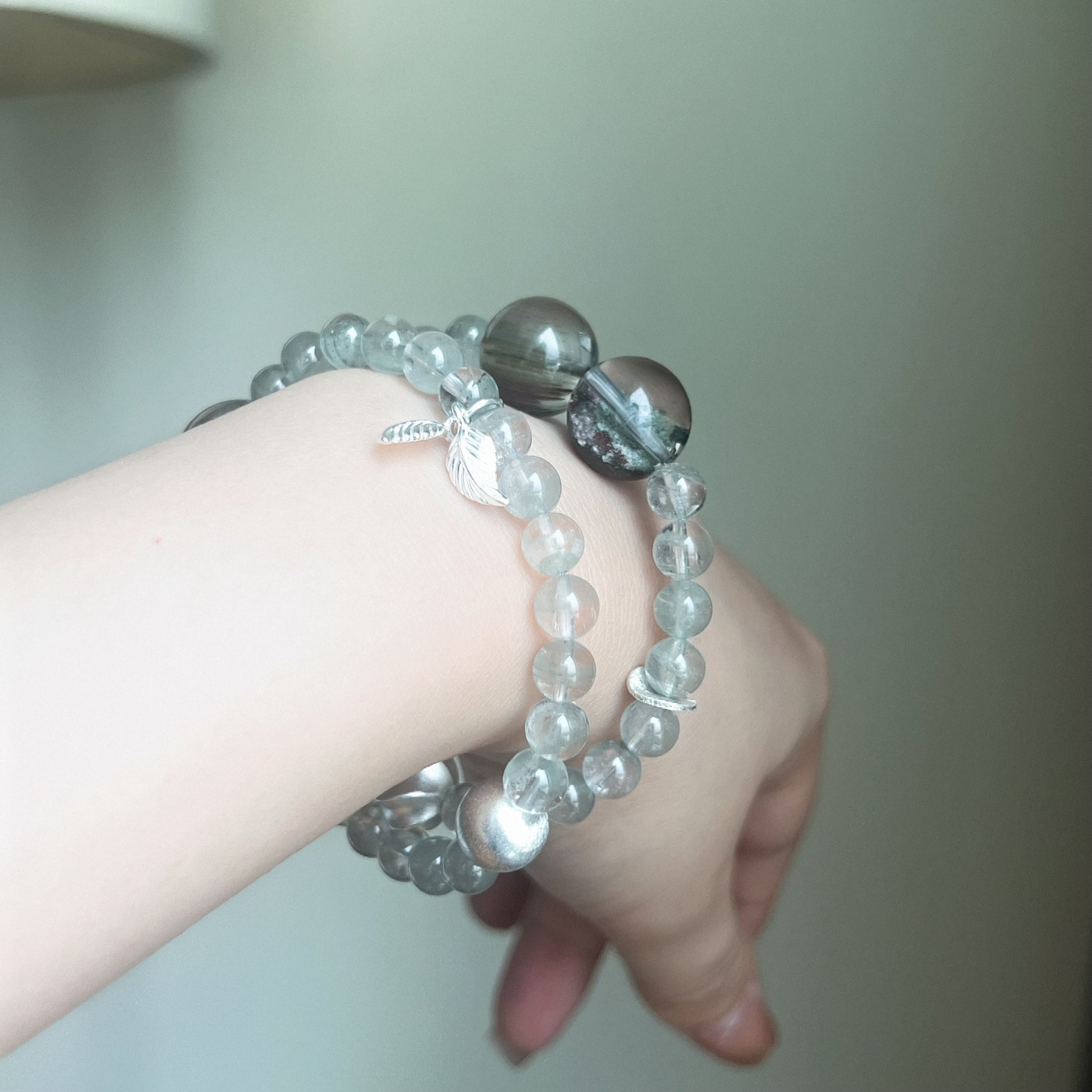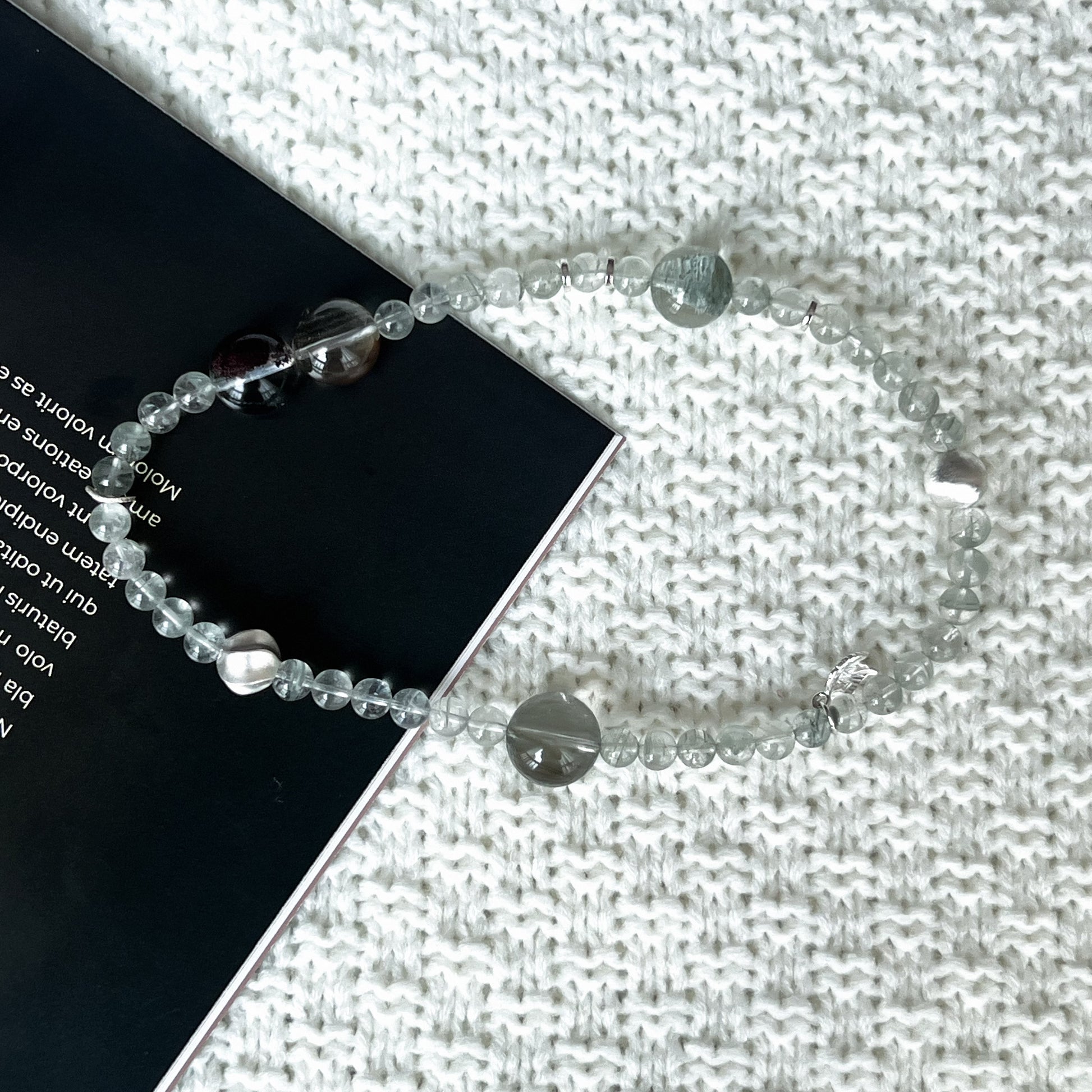 From an energy perspective, this piece unites healing calm (Green Phantom), grounding presence (Rabbit Hair Quartz), and renewal (Garden Phantom). Wearing it feels like carrying a fragment of spring mist and forest stillness at your wrist — serene, refreshing, and deeply poetic.