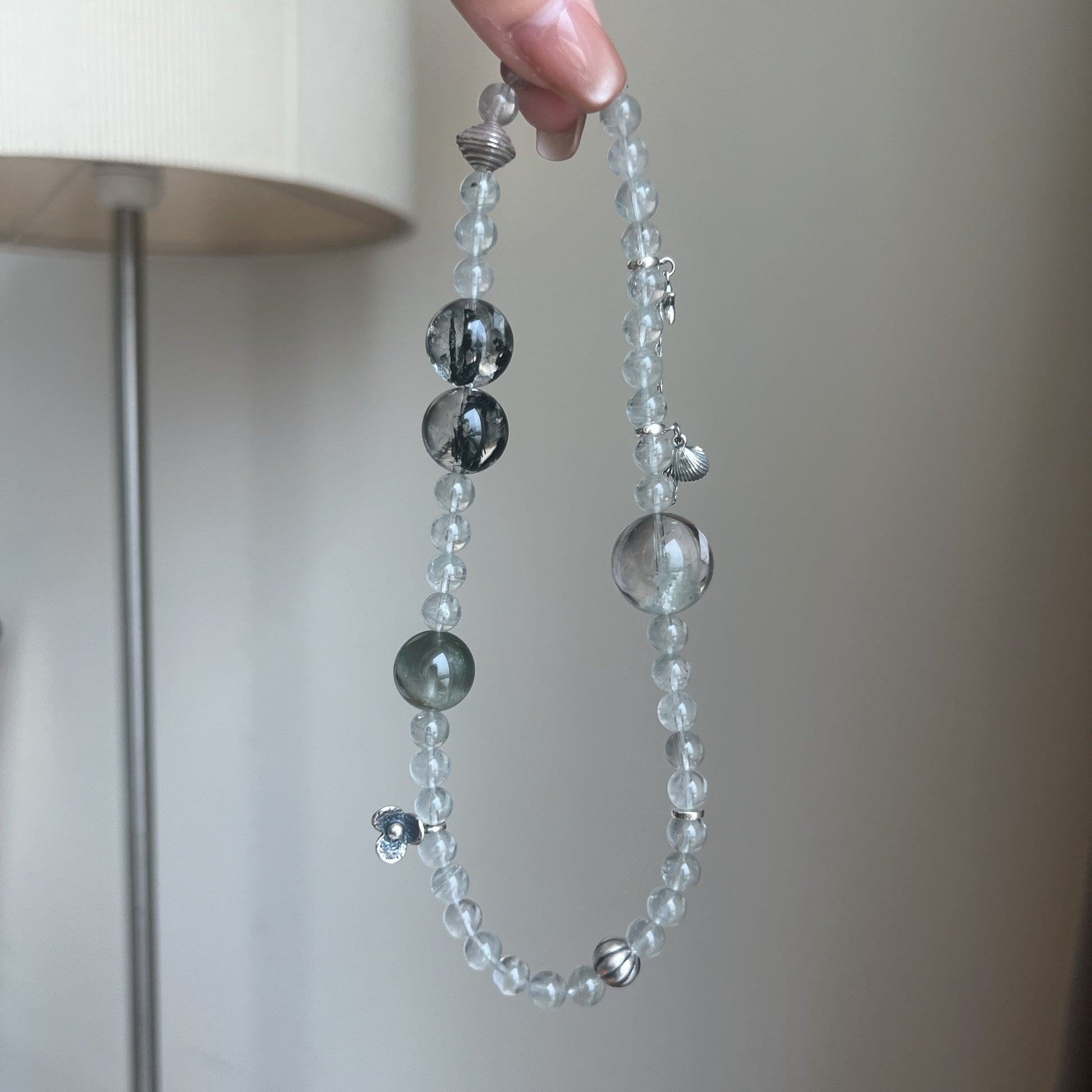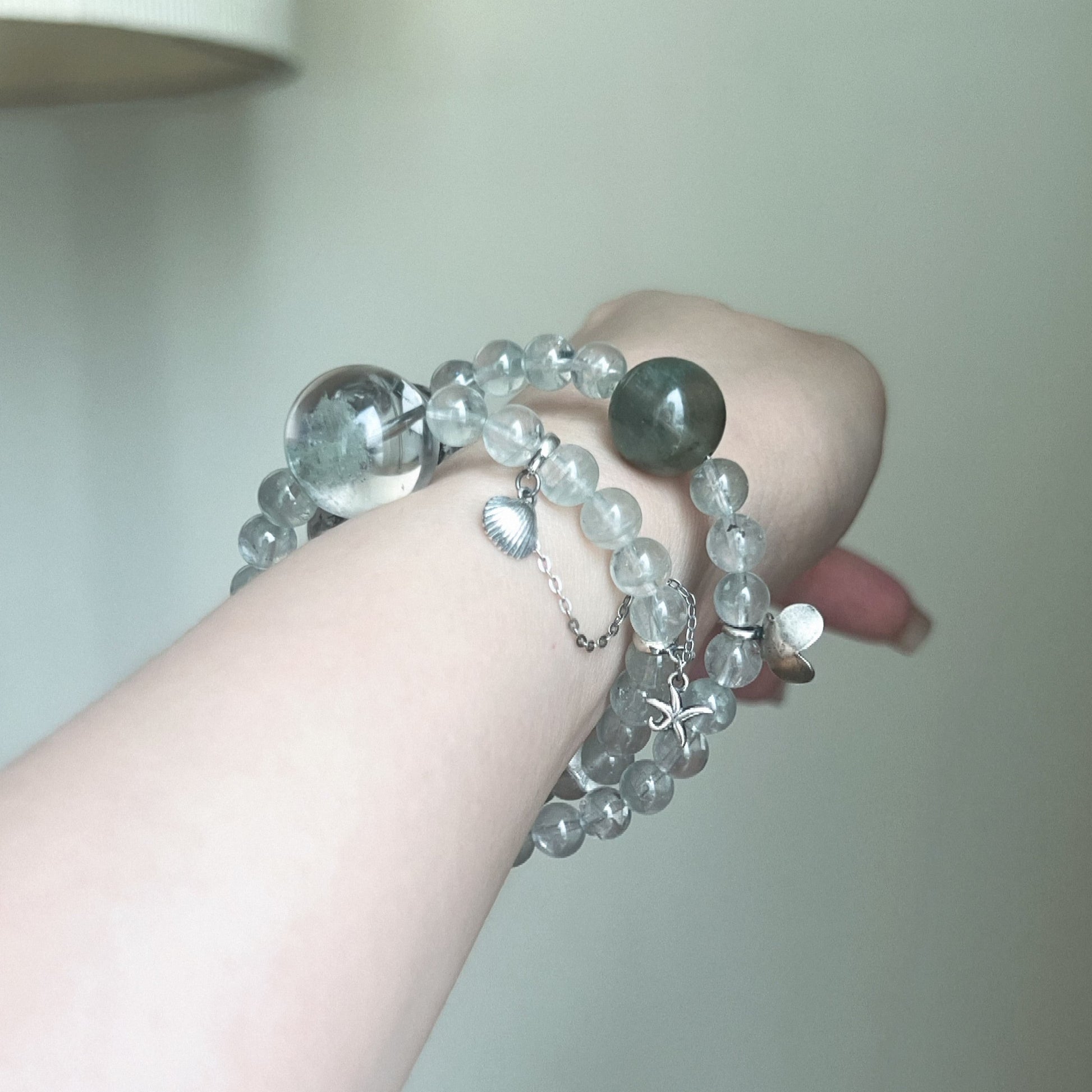 ✨ Green Phantom Quartz (6mm base beads) — Clear with a veil of soft green, each bead resembles new leaves unfurling in morning mist. Known as a stone of growth and prosperity, it brings fresh energy, clarity of vision, and support for steady progress.