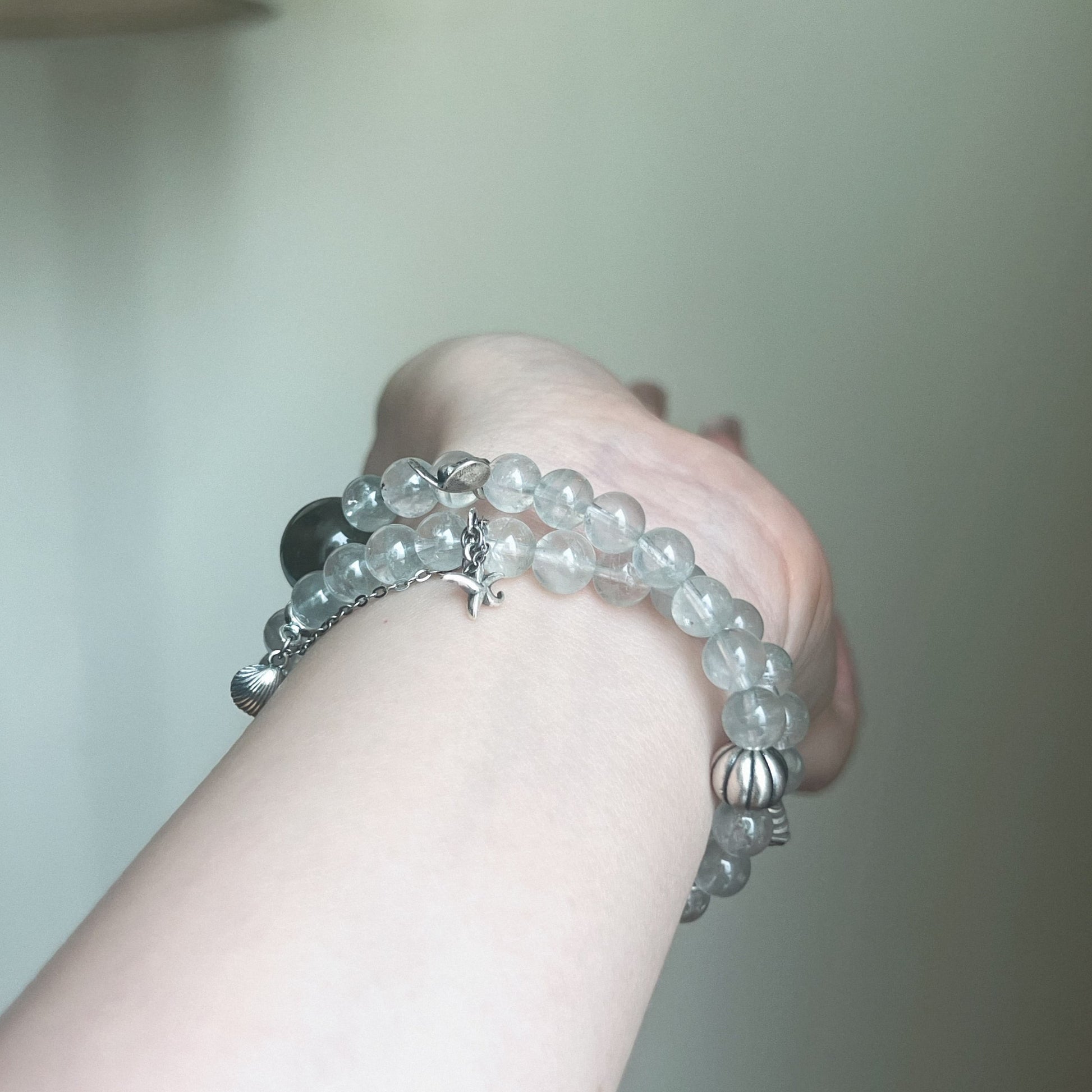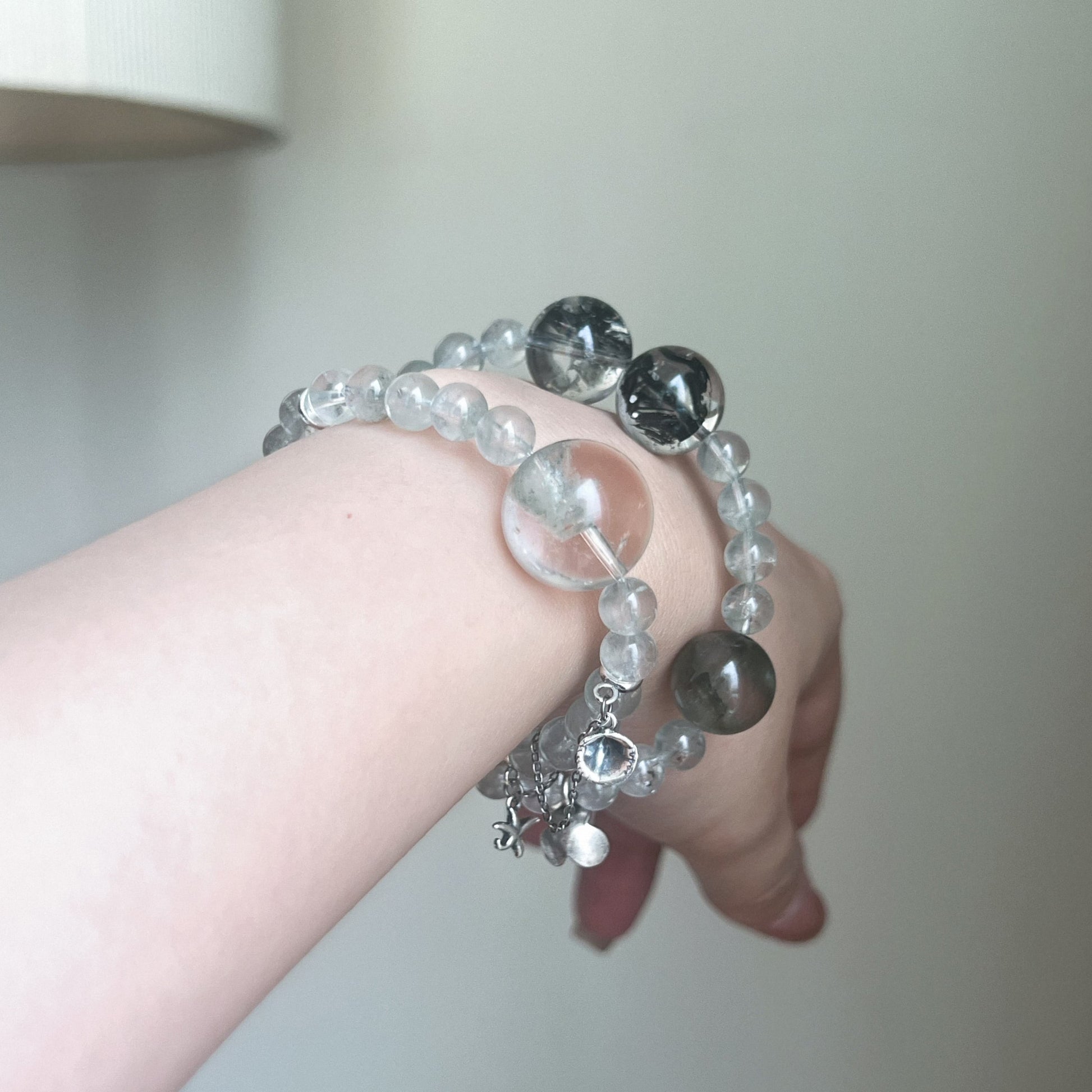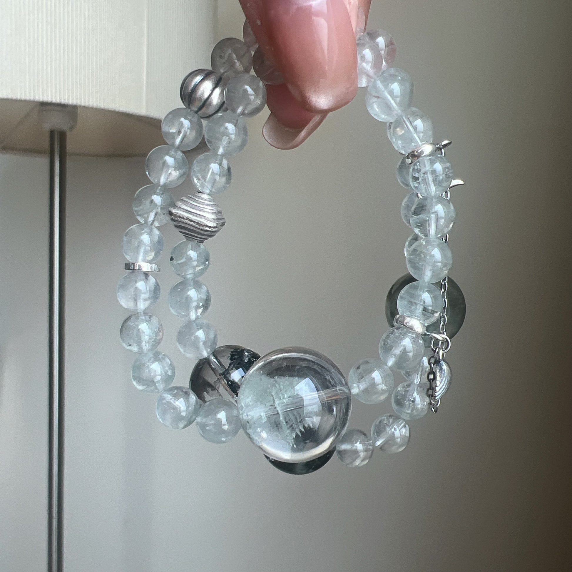 The double-wrap design layers crystals and silver with quiet sophistication, making it a versatile piece for both minimalist daily wear and artistic expression. Every movement feels like a dialogue with mountain mists and celestial trails.