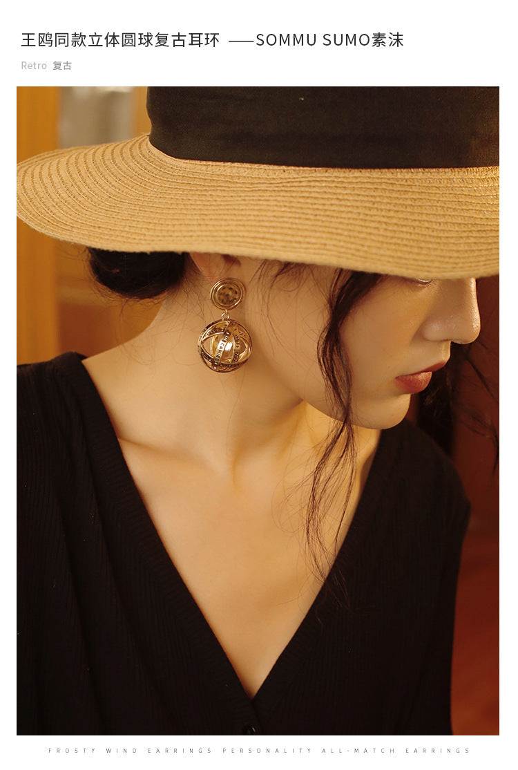 أقراط كروية فاخرة عتيقة من النحاس المطلي بالذهب – Orb Royale