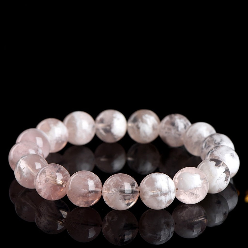 يتميز هذا السوار بأحجار كوارتز الثلج الوردي من الدرجة 7A المختارة بعناية، والتي تحمل مناظر داخلية نادرة وهالة ناعمة. كل قطعة فريدة من نوعها، أشبه ببصمة عاطفية متجمدة في الكريستال — مثالية للشفاء العميق والاتصال الروحي.