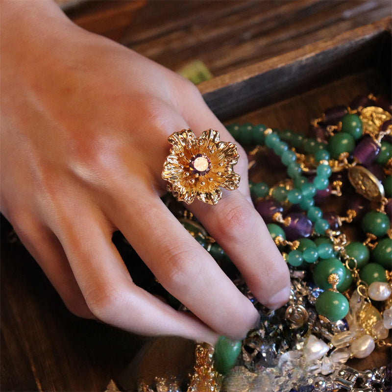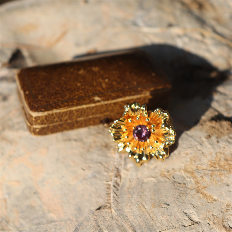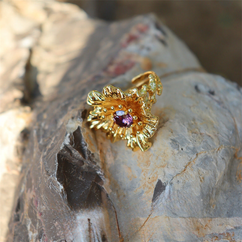 بتلة شمسية · خاتم زهرة نحتي فينتج فاخر يدوياً