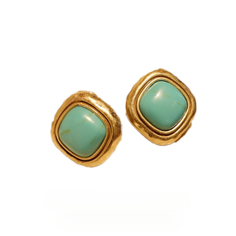 مجموعة مختارة تعيد إحياء مجوهرات البيان الأوروبية من منتصف القرن، هذه القلادة مع أقراط فيروزية تعكس دفء الذهب العتيق وهدوء أحجار السماء الزرقاء. كل حجر فيروز بيضاوي مصقول تحيط به لمسات من النحاس المطلي بتشطيب عتيق، ليمنحك حجماً جريئاً وأناقة كلاسيكية لا تخطئها العين.