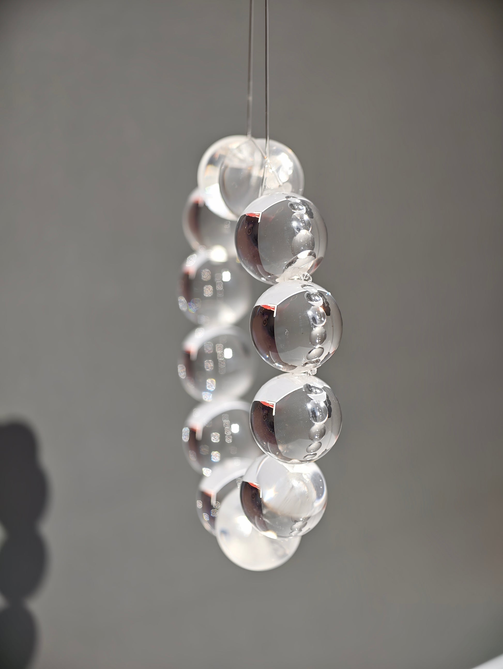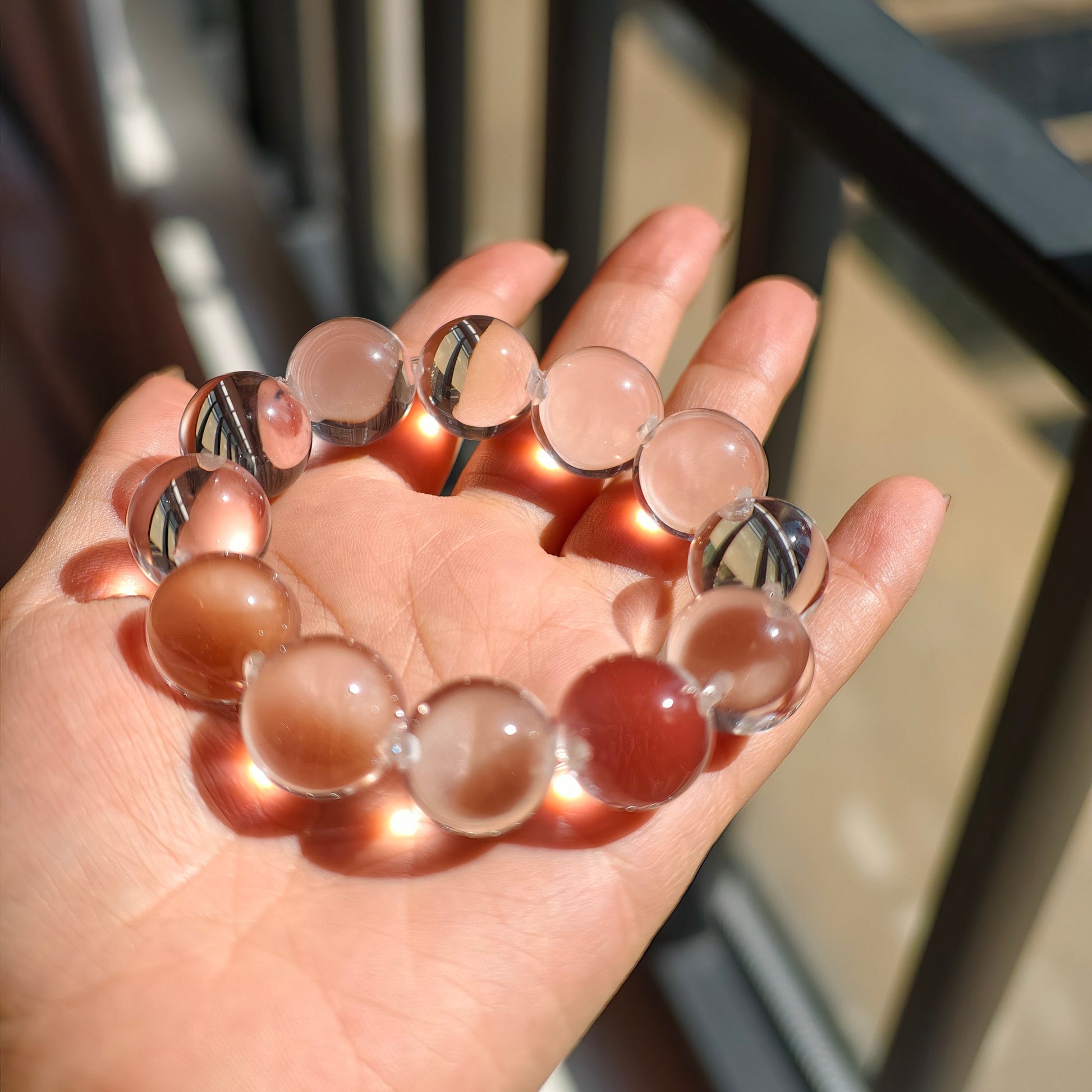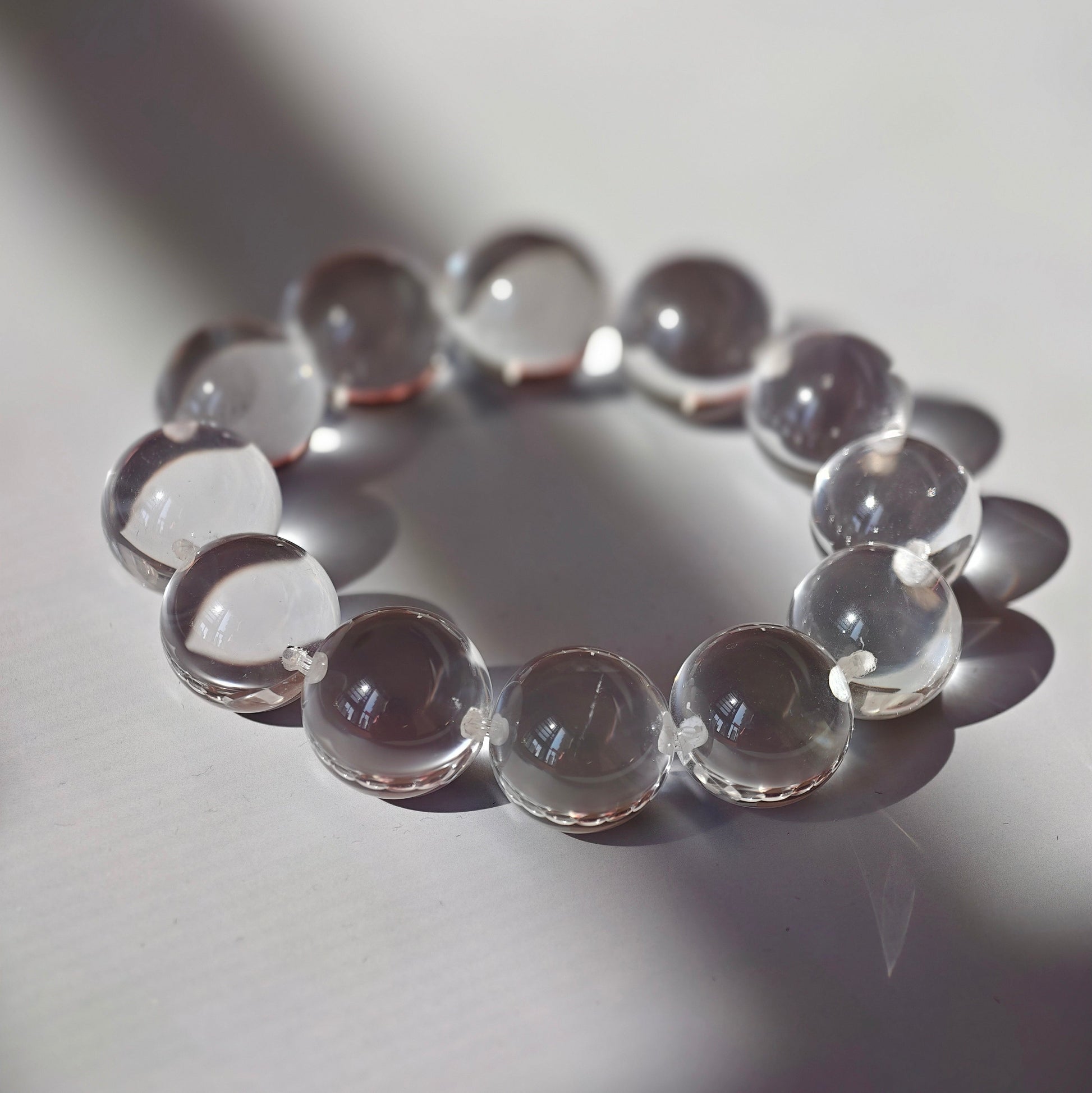 朝の光の滴を身に着けているかのようなブレスレット — 純粋で、軽やかで、クリスタルのように透明です。この作品は 高品質な透明水晶から作られ、各ビーズが鏡のような透明感と自然な輝きを放っています。均一な透明性が優雅な浮遊効果を生み出し、光が全体をスムーズに通り抜けることを可能にします。