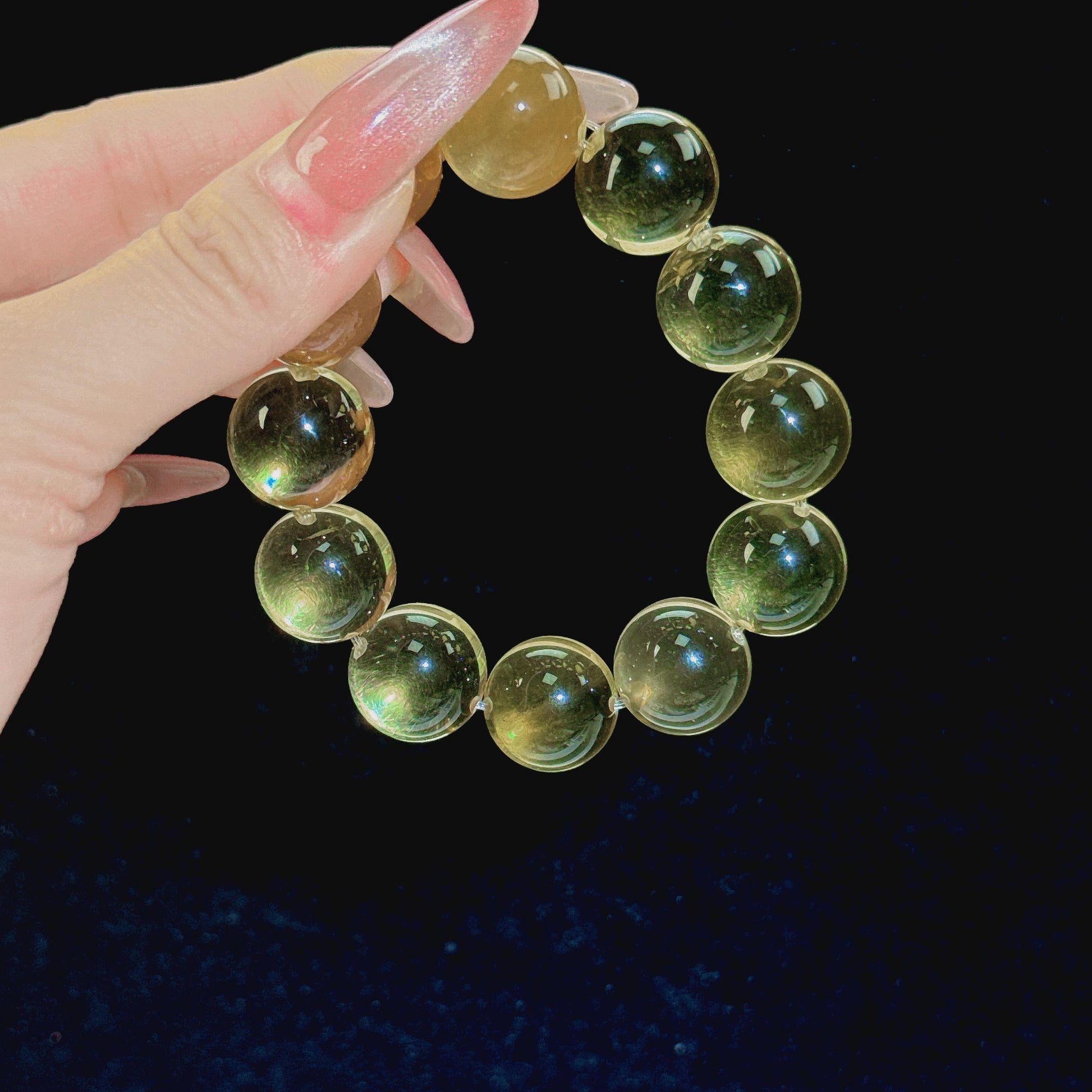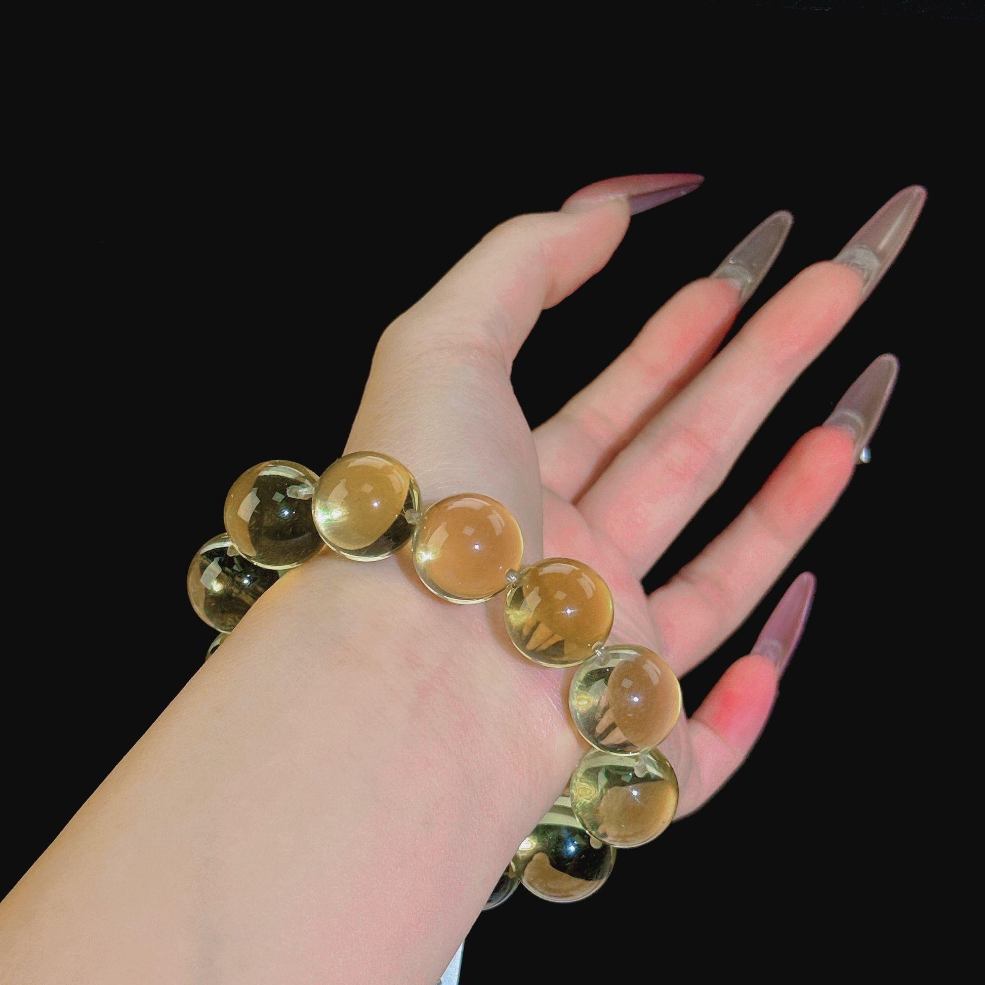 明るく、暖かく、そして間違いなく輝かしい——このブレスレットは、まるで手首に一滴の太陽光を携えているような感覚です。素材は プレミアム15mmシトリン各ビーズが黄金色の輝きを放ち、光の下では柔らかな虹のような光を反射します。その透明感と豊かなハニーゴールドの色合いが、贅沢で心を高揚させる存在感を生み出します。