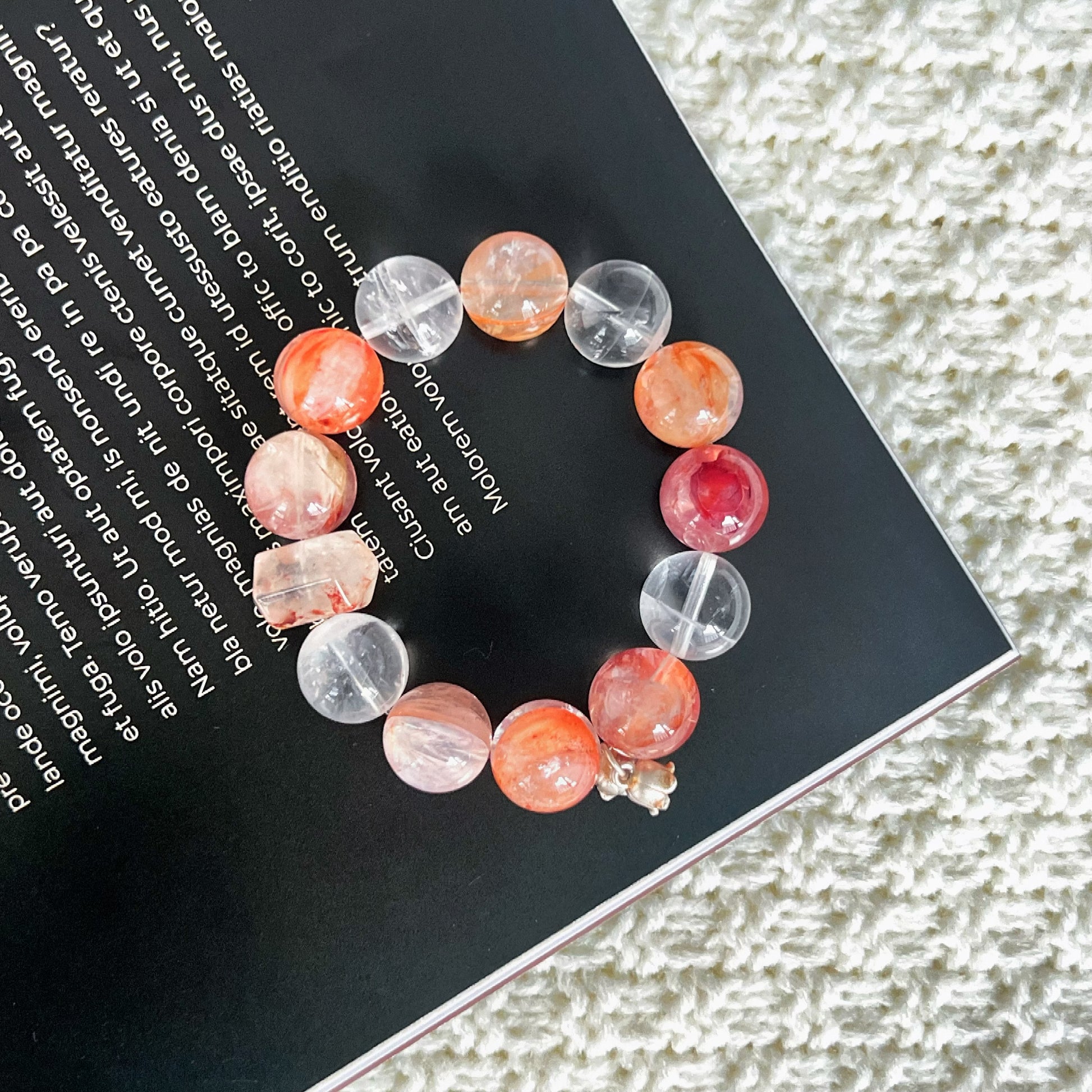 반짝이는 내포와 은빛 울림이 어우러진 크림슨 에코는 강인함과 우아함을 모두 담은 수호 부적으로, 그라운딩 의식, 아침 명상, 또는 일상에서 당신의 열정을 세련되게 지니기에 완벽합니다.