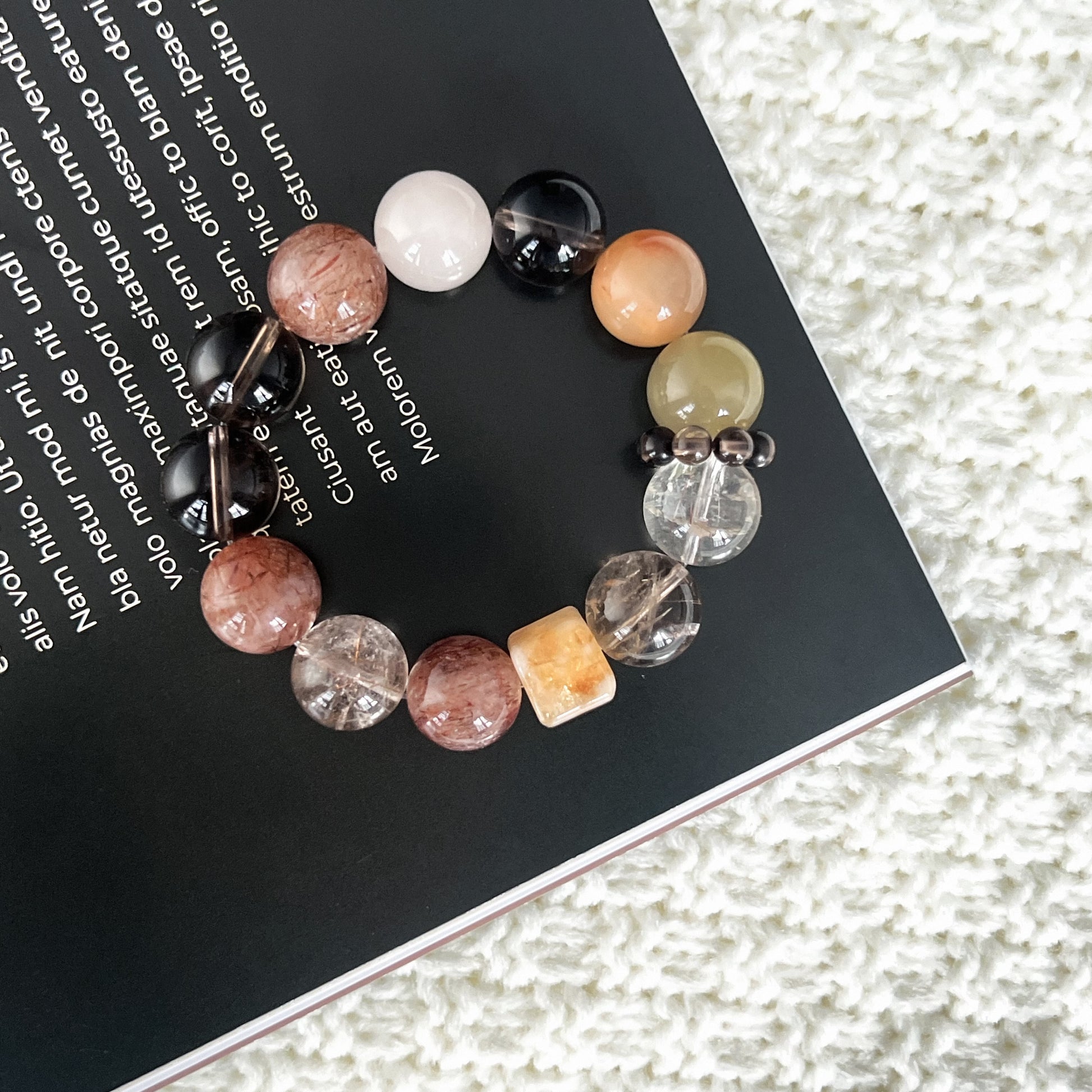 차분하면서도 빛나는 핸드메이드 크리스탈 팔찌로, 다음 원석들로 정성스럽게 제작되었습니다: