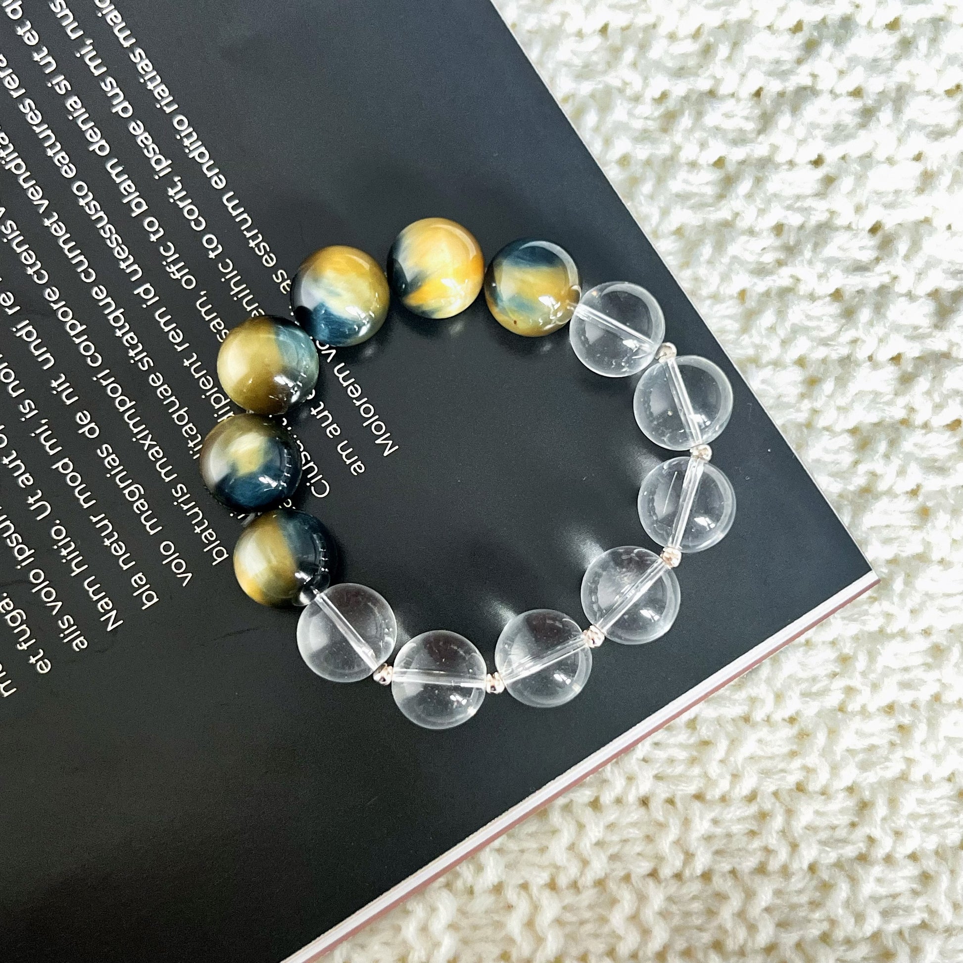 A bold yet minimal statement piece, this bracelet blends earth and clarity—like sunlight breaking through a stormed sky. Handcrafted with: