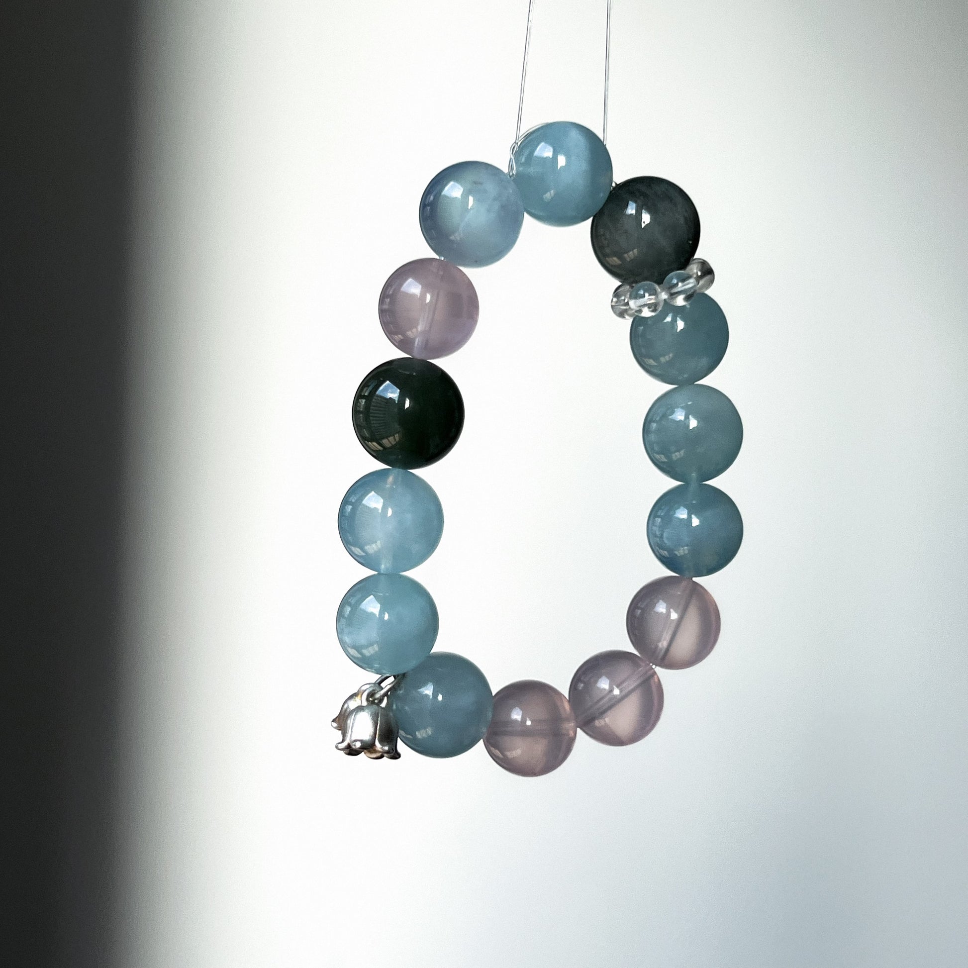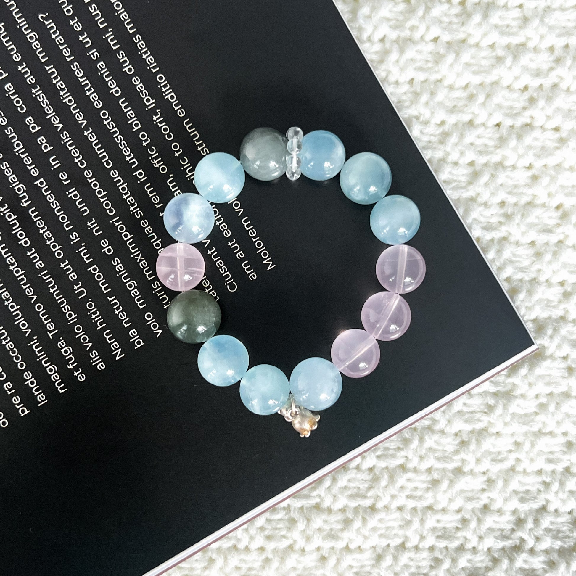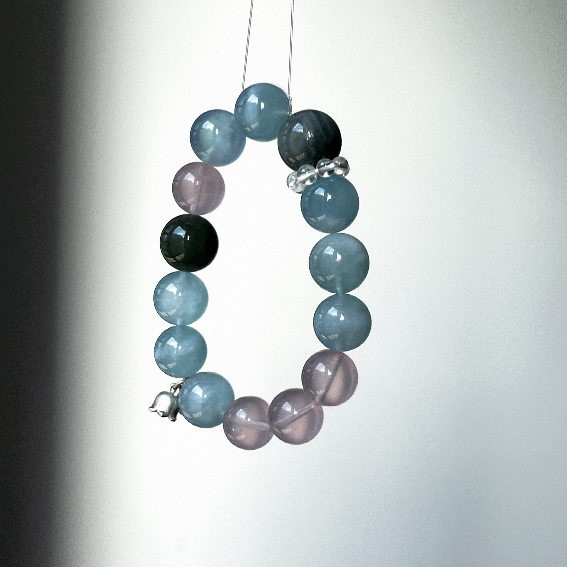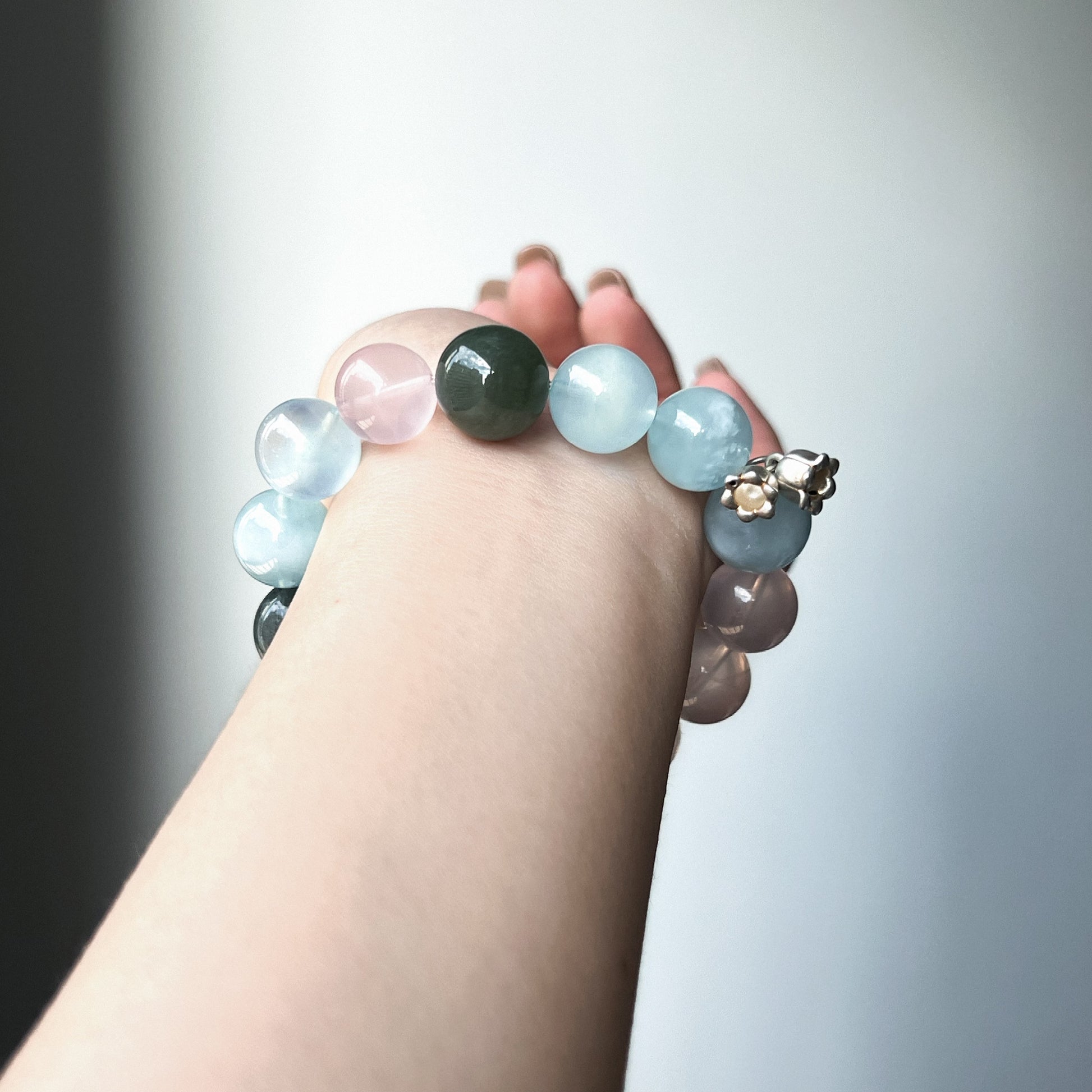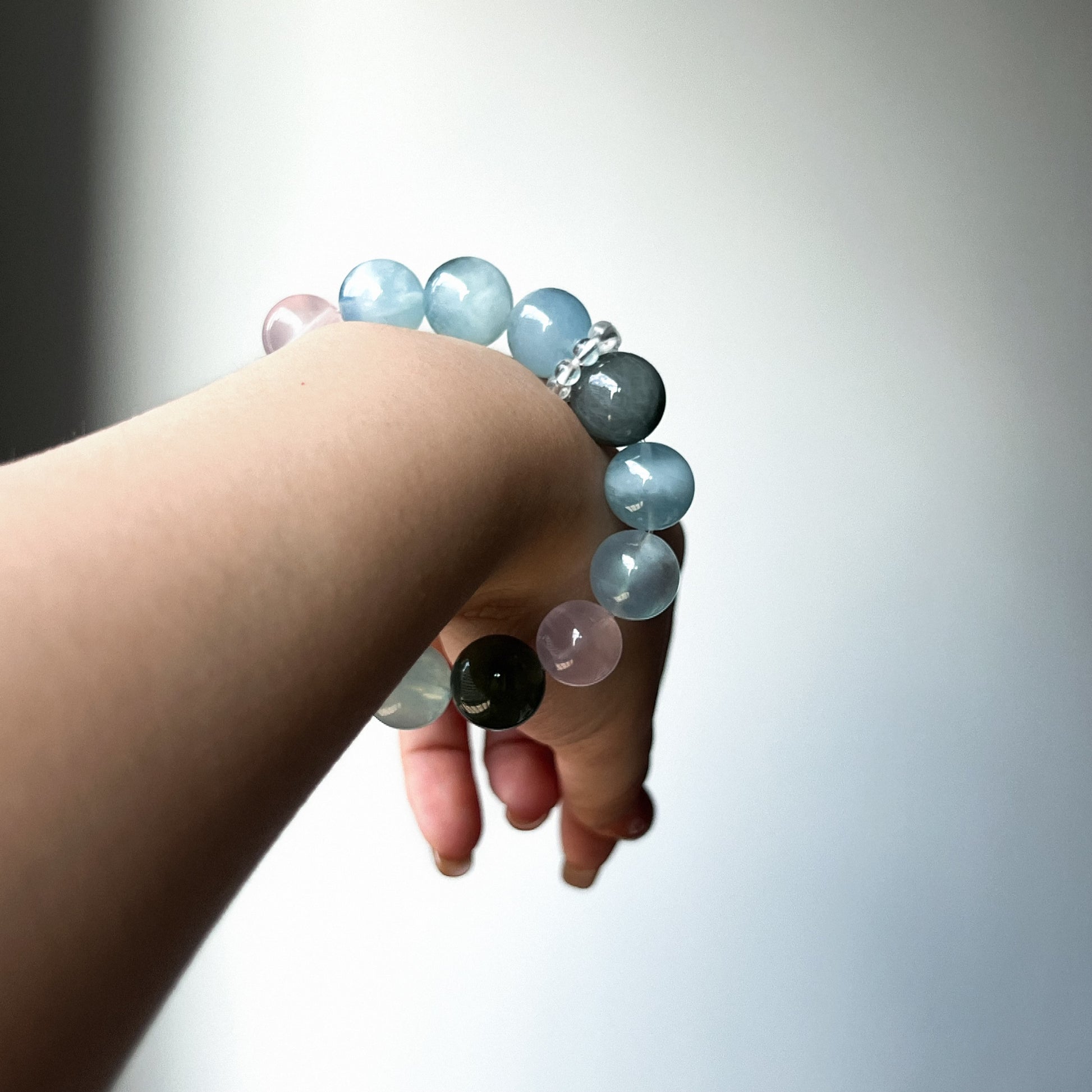 This one-of-a-kind handmade crystal bracelet features a gentle trio of healing stones: