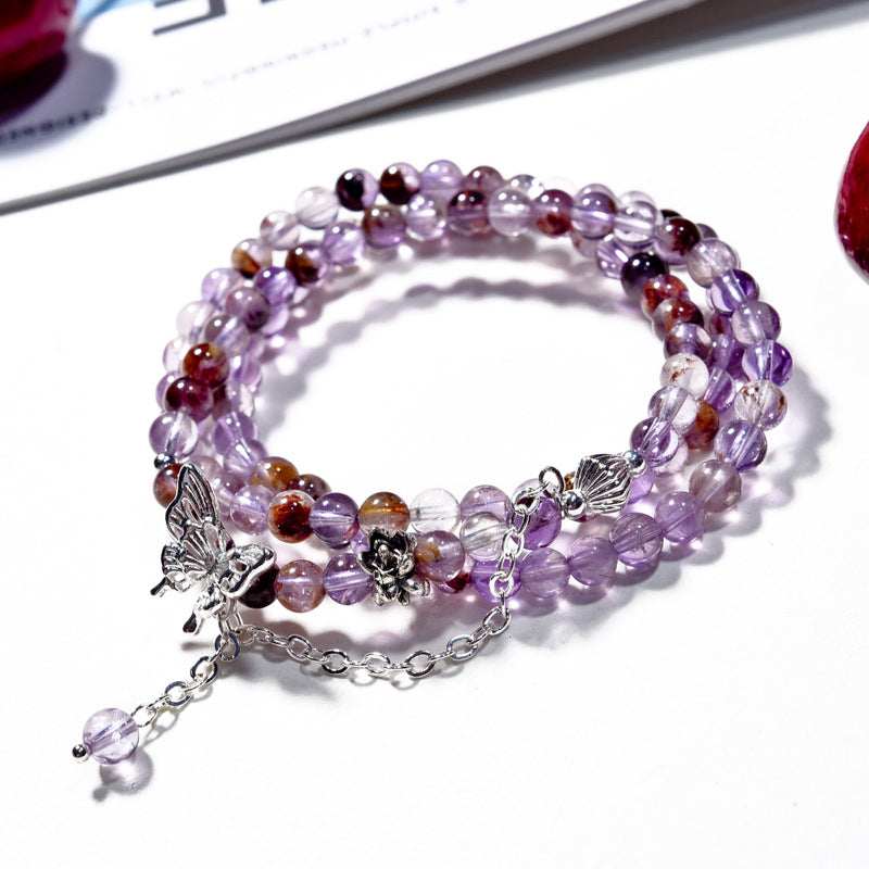 A dreamy, vine-like wrap bracelet handcrafted from natural Amethyst and Red Floral Phantom Quartz, designed to encircle the wrist with soft spiritual energy and grounding balance. Each bead holds a whisper of nature — from violet serenity to earthy inner blooms.